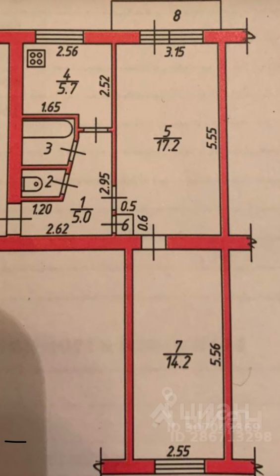 Общая площадь 45 квм,жилая 30 квм,кухня 5,5 кв.