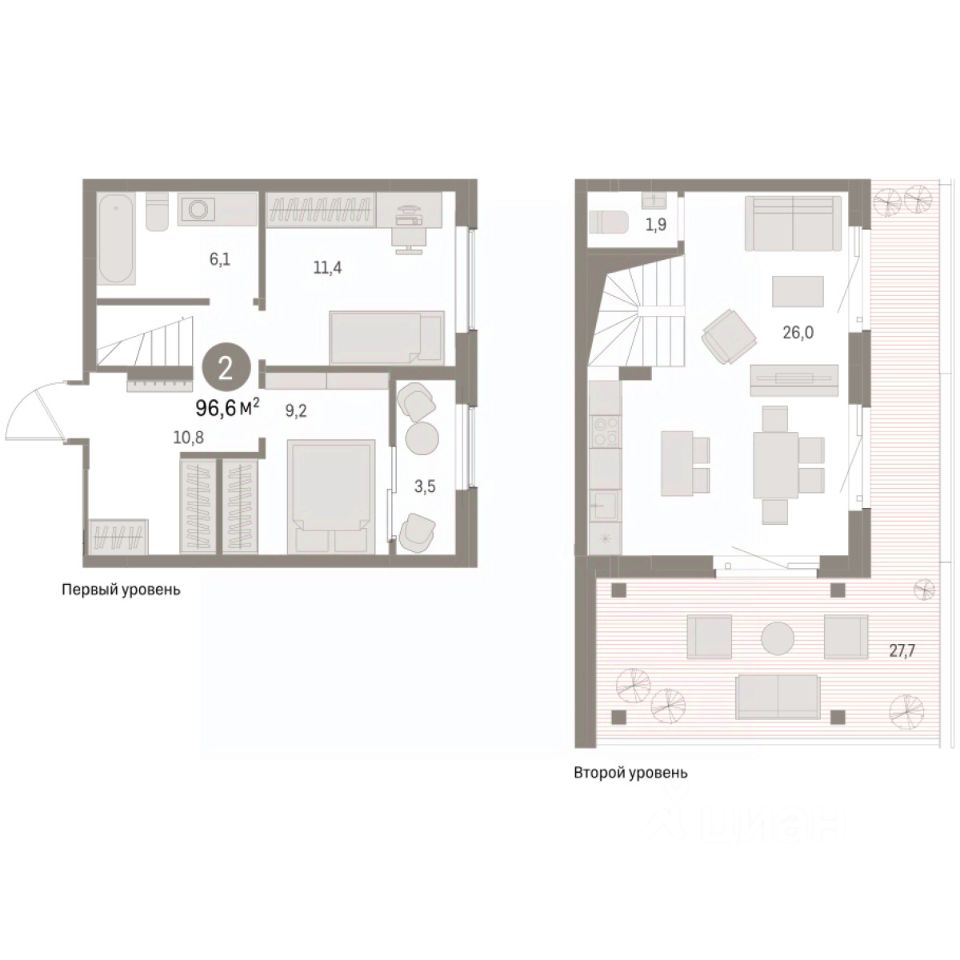 Просторная двухкомнатная квартира с предчистовой отделкой в ЖК ''Дом Кино'' на 8 этаже. Двухуровневая квартира с возможностью разделения гостевой зоны и личного пространства. Общая площадь: 96.59 кв.м., жилая: 20.6 кв.м., площадь просторной кухни-гостиной: 26 кв.м. Угловая квартира, идеально подойдет любителям тишины и панорамных видов. В квартире один балкон, один совмещенный и один раздельный санузел. Терраса представляет собой роскошную зону отдыха, где вы на свой вкус можете создать атмосферу комфорта и уюта. Высота потолков 2.7 м.