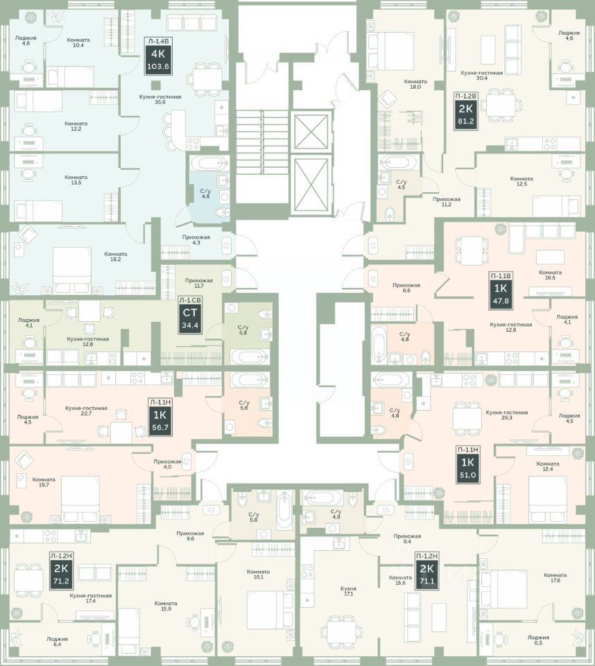 Просторная 4-комнатная квартира 80 в жилом комплексе комфорт-класса Районы-кварталы. Квартира находится в 1 секции 1 этапа. Этаж 11 -й из 17.