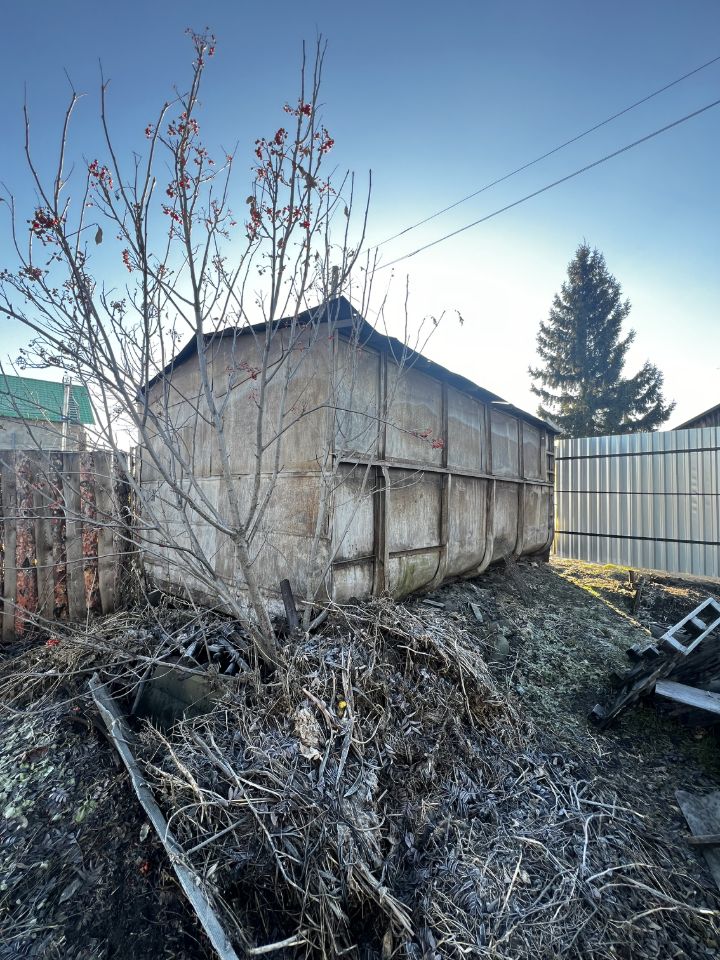 На участке есть баня, железный гараж и хозпостройки.